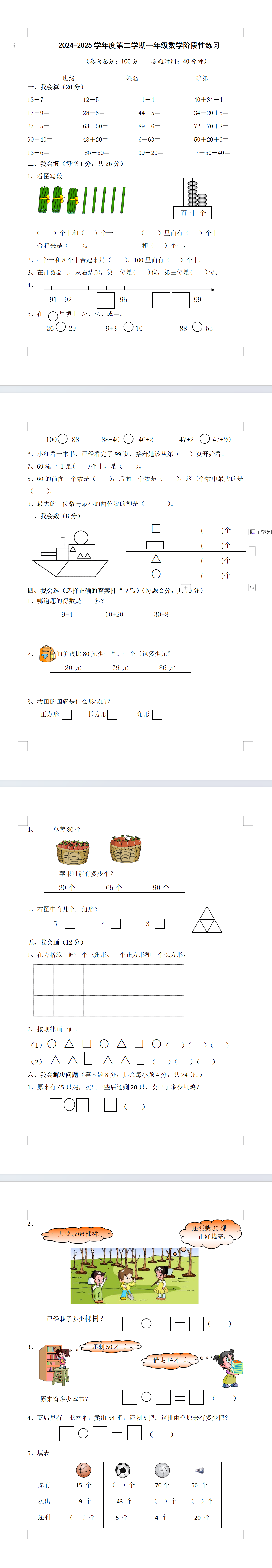 袁佳蕾设计2024-2025学年度第二学期一年级数学阶段性练习