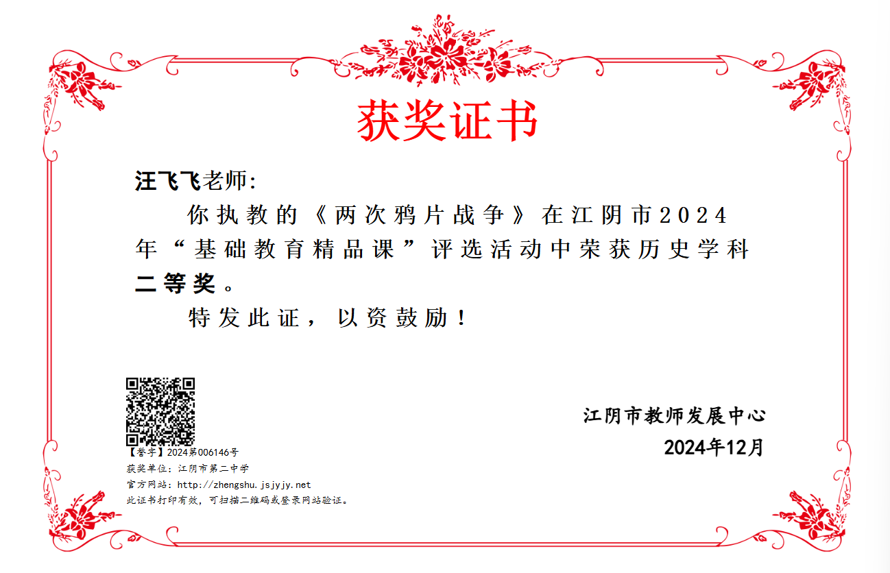 江阴市“基础教育精品课”评选二等奖 2025-09-16