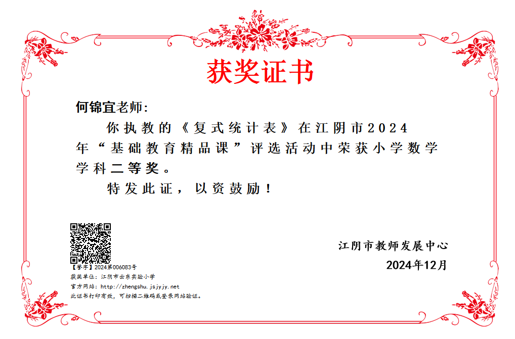 何锦宜——江阴市“基础教育精品课”二等奖