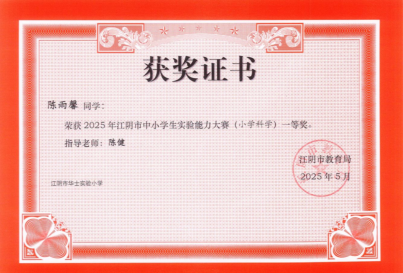 陈健-陈雨馨-江阴市中小学生实验能力大赛一等奖