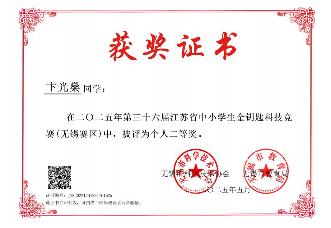 陈健-卞光燊-2025年第三十六届江苏省中小学金钥匙科技竞赛(无锡赛区)一等奖 2025-09-18