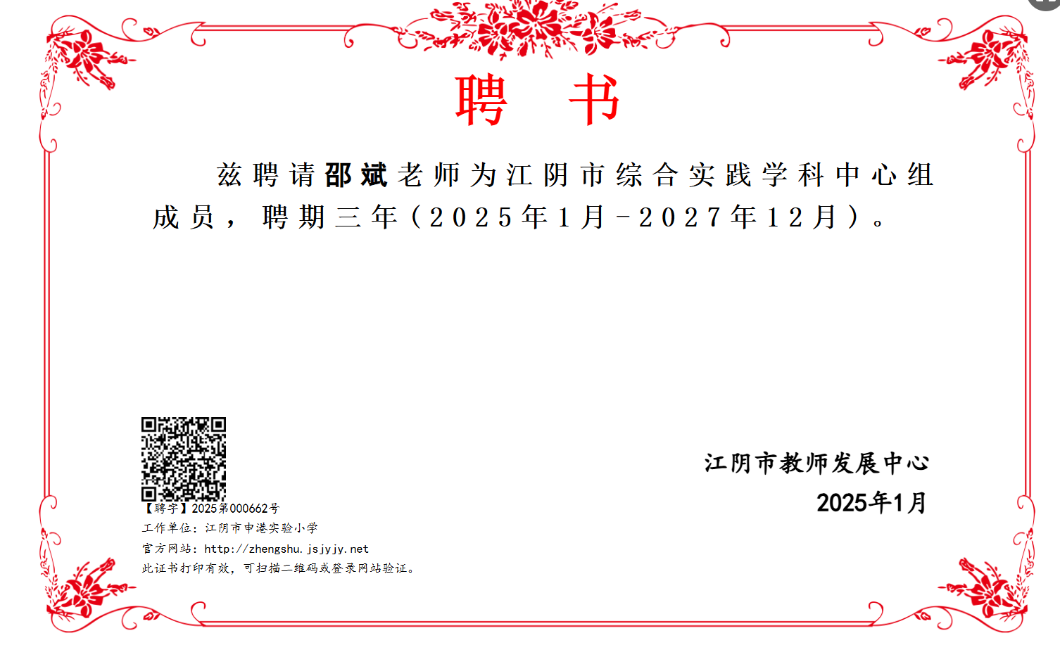邵斌被聘为江阴市综合实践学科中心组成员