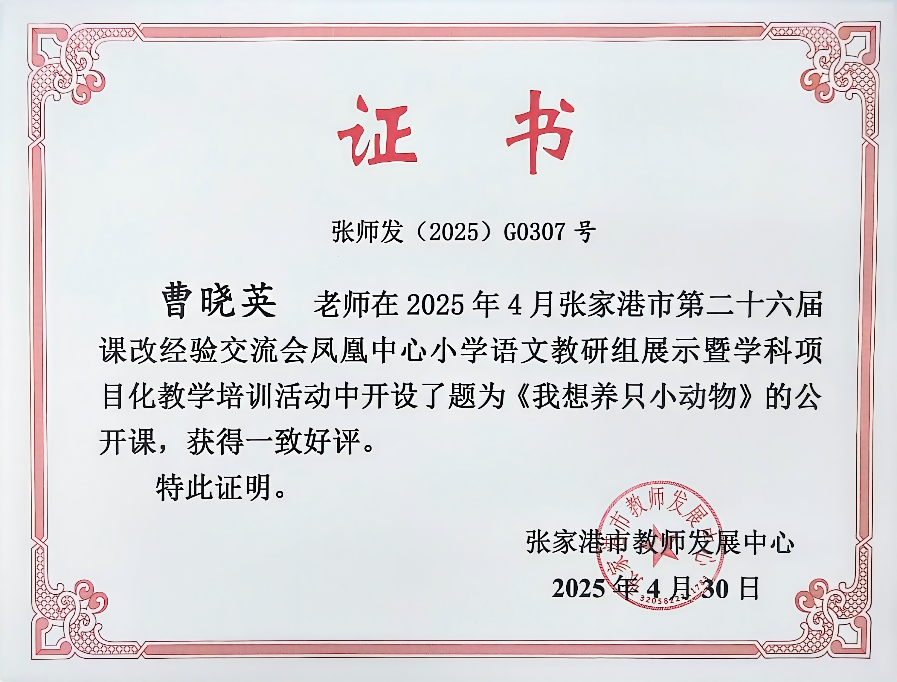 网站类目:课堂实录 活动级别:县级 活动类别: 执教姓名:曹晓英 所在单位:江阴市教育局 执教时间:2025-09-22 执教地点:张家港风凰中心小学 执教内容:《我想养只小动物》 参加对象:学科项目化培训活动