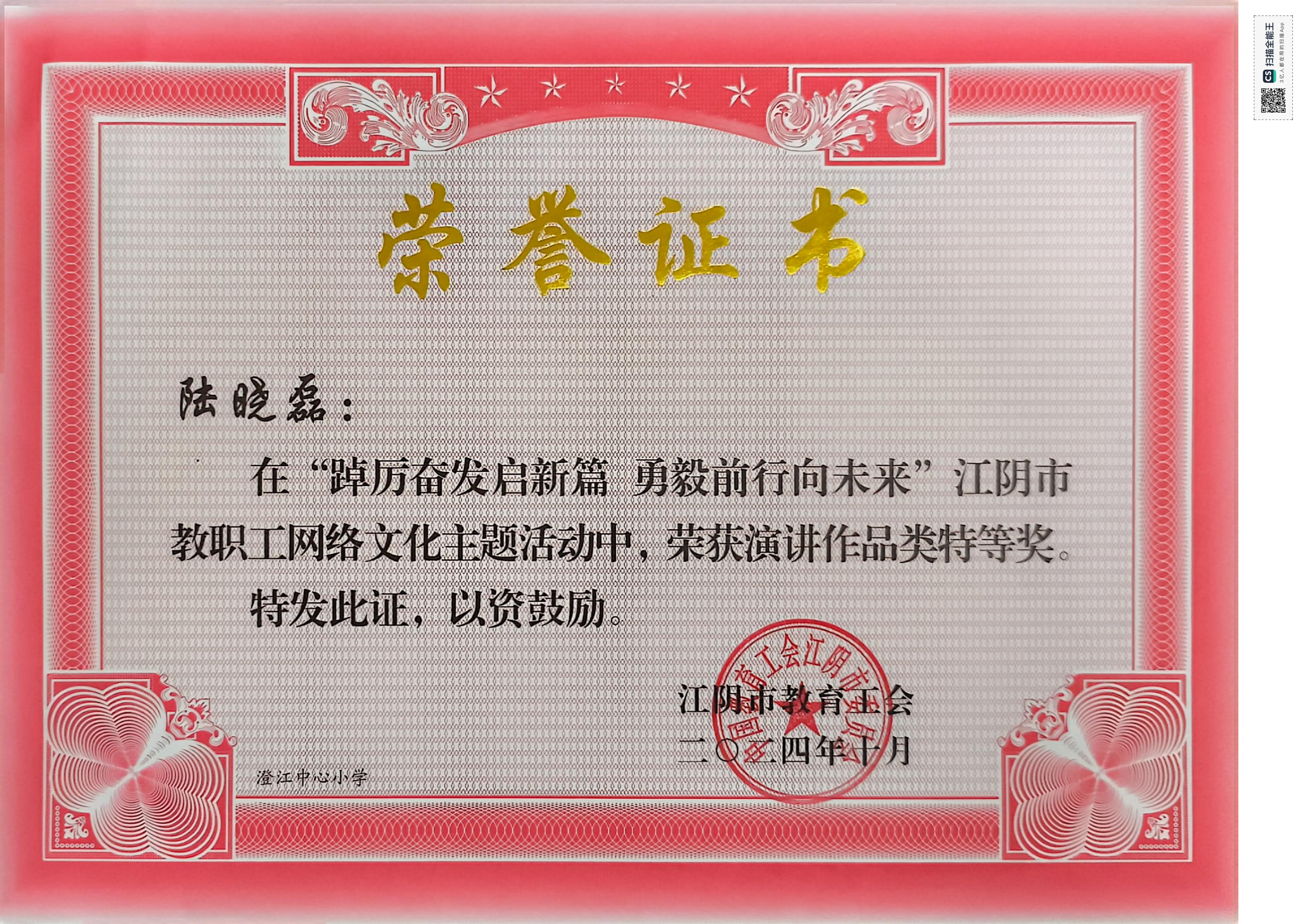 陆晓磊获江阴市教育工会演讲比赛一等奖
