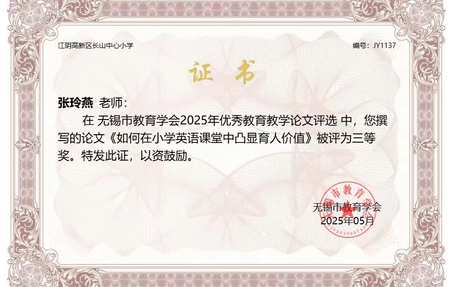 江阴市顾海英德育名师工作室——成员王怡蕾获2025年无锡优秀教育论文三等奖