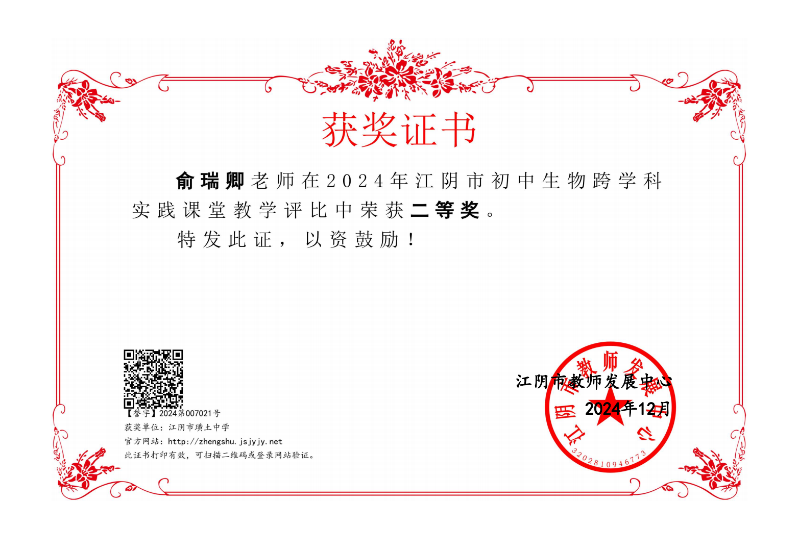2024年江阴市初中生物跨学科实践课堂教学评比二等奖