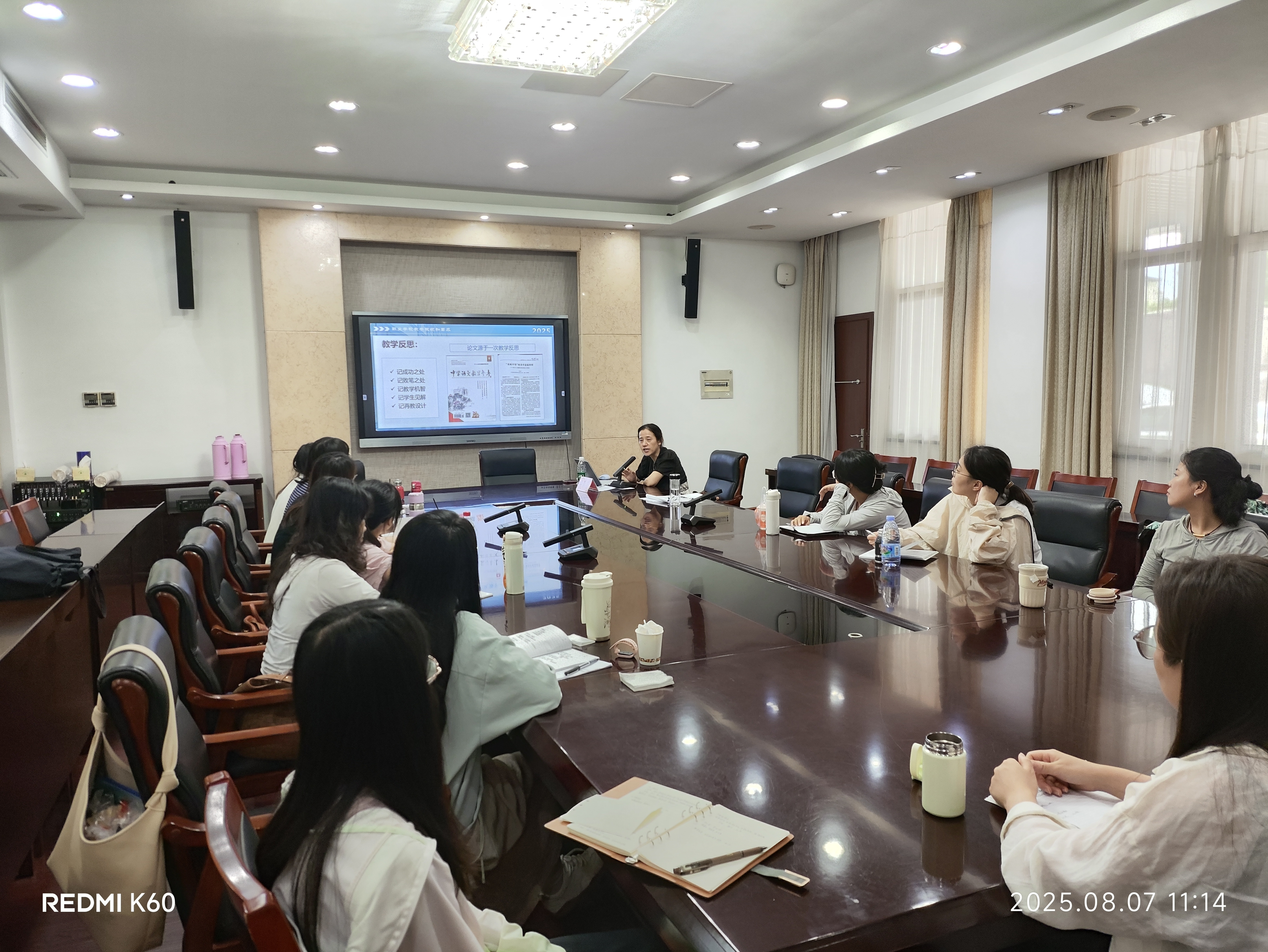 季老师与新教师们亲切交谈,告诉大家如何调整心理落差、做好角色转变、提升认知维度,尽快适应职校教师岗位,尽早融入职校教师团队。接着,季老师围绕职业学校教学规范和要求,对专业建设、人才培养方案、课程标准、教材、常见教学表式等一一进行了介绍,并重点强调了教学“六认真”常规。随后,季老师又结合青年教师在课堂教学中常见的问题,通过丰富的案例就如何备好课、上好课给出了许多实用的方法,例如,如何确定教学目标,教学语言如何规范,实践操作如何避坑等,并建议新教师通过多看课、多听课、多评课,学会教学反思这两条最有效的途径尽快学会上好课,站稳讲台。