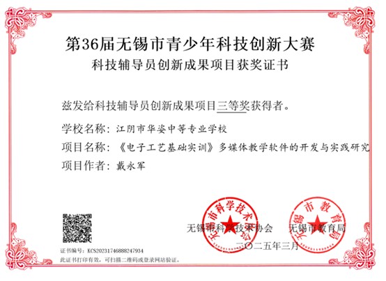 戴永军获青少年科技创新大赛科技辅导员创新成果三等奖