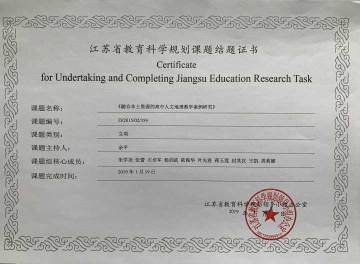 省级课题结题证书